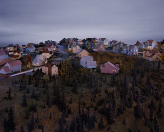 James Casebere, Landscape with Houses (Dutchess County, NY) #3, 2010, digital chromogenic print mounted on dibond, 44 x 55 inches, collection of Steven and Lisa Goldglit, copyright James Casebere, image courtesy of Sean Kelly Gallery, New York