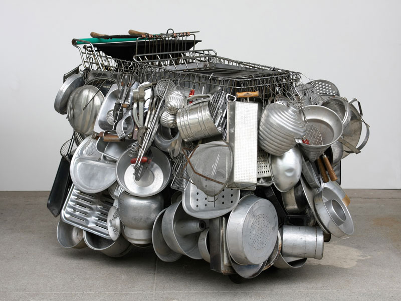 Cris Bruch, Roller Roaster, 1985, steel shopping cart, grill, and mixed media, 39 x 55 x 39 inches, Yale University Art Gallery, Janet and Simeon Braugin Fund