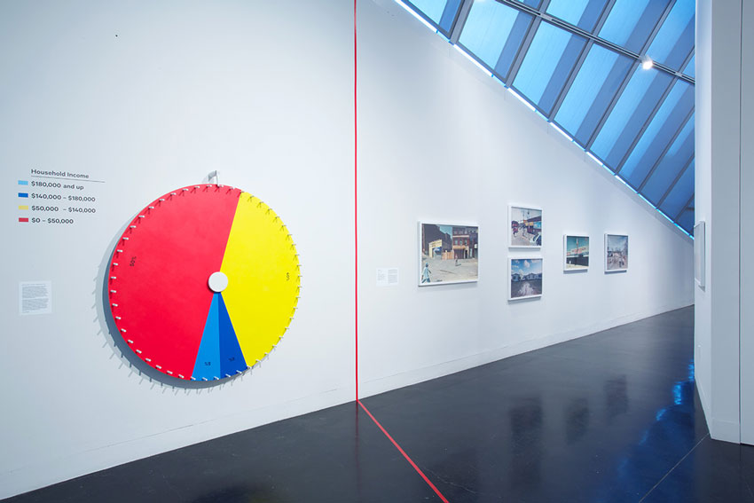 Photographer James Casebere (b. 1953) examines the increase in the suburban population since the late twentieth century and its effect on the American landscape and psyche. Casebere's large-format photographs of suburban upper-middle-class housing actually depict landscapes meticulously designed and produced in the studio, using information drawn from architecture, art history, and cinema. These artificial vistas of "idyllic" subdivisions display the effects of class on both how and where we live.
