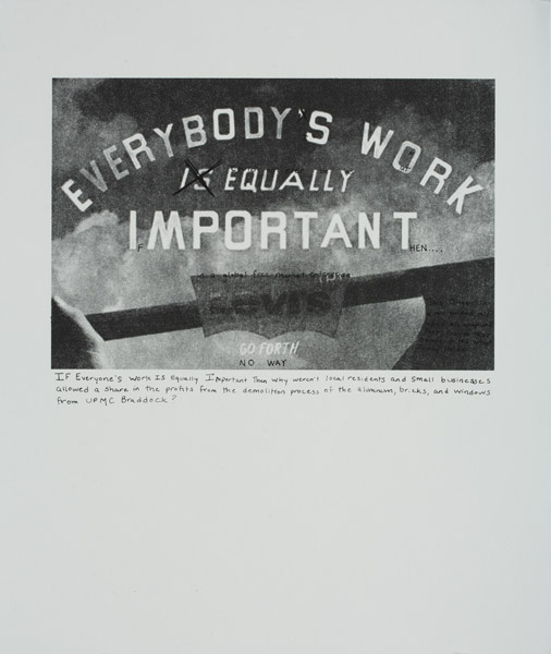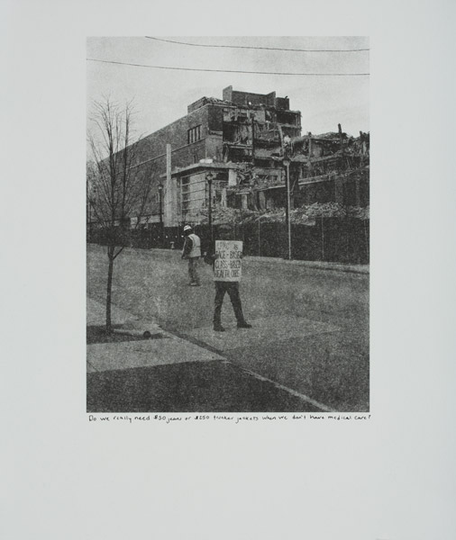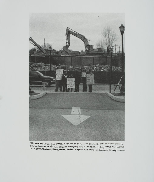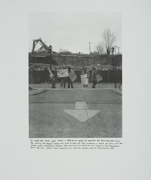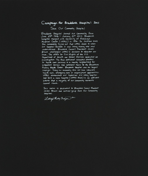 LaToya Ruby Frazier, Campaign for Braddock Hospital (Save Our Community Hospital), 2011, suite of 12 photolithographs and silkscreen prints, 17 x 14 inches, courtesy of the artist
