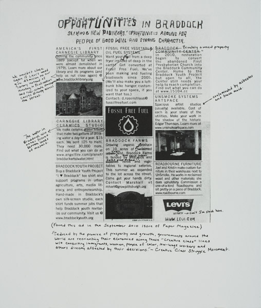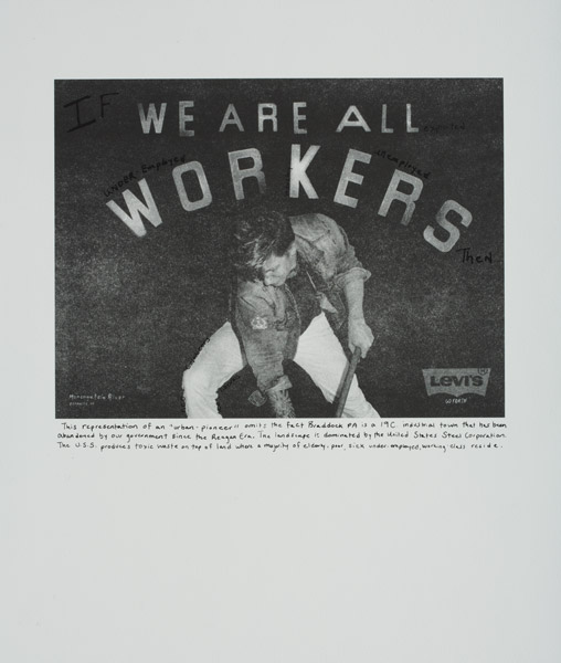 Photographer and media artist LaToya Ruby Frazier (b. 1982) combines social documentary and portraiture to examine the human casualties of economic decline. Raised in the decaying steel town of Braddock, Pennsylvania, Frazier focuses her photography on the town's working-class population and Braddock's change from an industrial center to a place abandoned by industry and wealth. This portfolio examines the town's struggle with access to health care after its hospital closed in 2010. Unraveling reality from fantasy, it critiques a Levi's advertisement campaign that used the town as its source material.