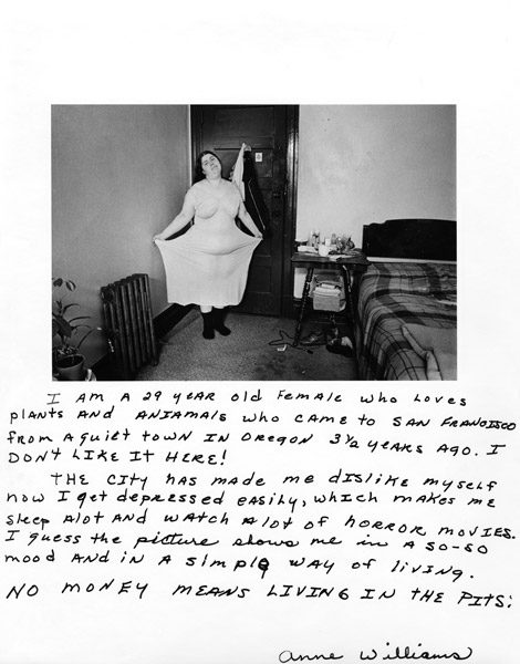 Jim Goldberg, I am a 29 year old female, from Rich and Poor, 1978/85, gelatin silver print, 11 x 14 inches, courtesy of the artist and Stephen Wirtz Gallery