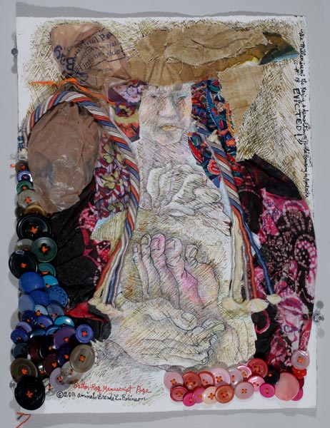 Aminah Brenda Lynn Robinson, The Millennium Series #17: Manuscript Page, 2011, mixed media on cardboard, 15 x 11 1/2 inches, courtesy of ACA Galleries, New York