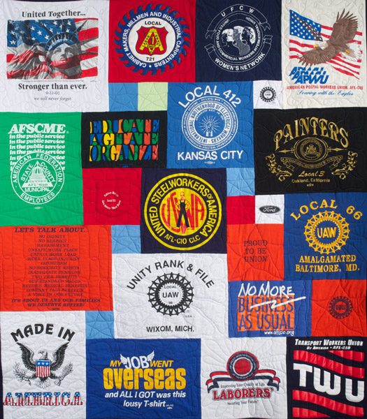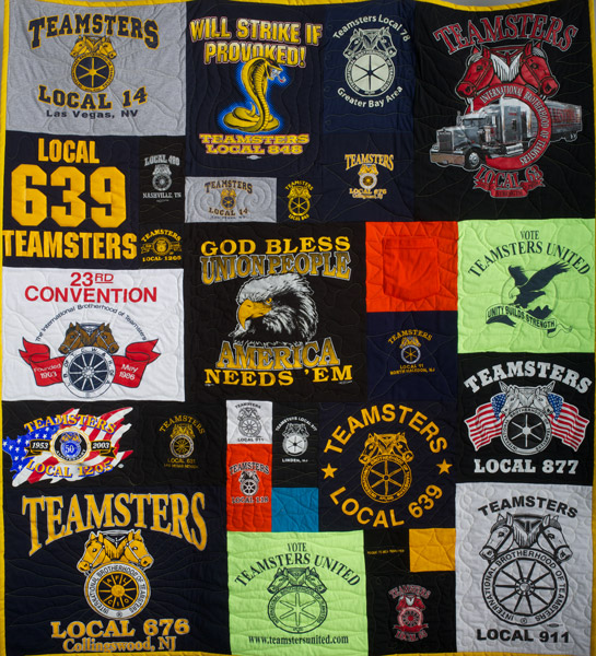 Andrea Funk, Untitled (for Local 14 Teamsters), t-shirt quilt, 51 x 57 1/2 inches, American Labor Museum/ Botto House National Landmark, Haledon, New Jersey